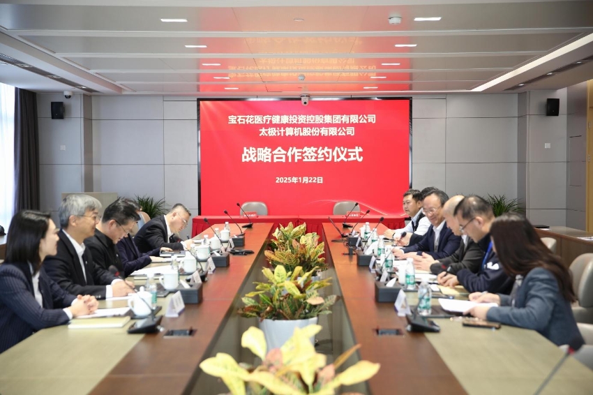 1月22日上午,通用技术宝石花医疗与中国电科太极计算机股份有限公司签署战略合作协议。宝石花医疗董事长、党委书记王旸,太极股份董事长、总裁仲恺出席签约仪式,并代表双方签署战略合作协议。