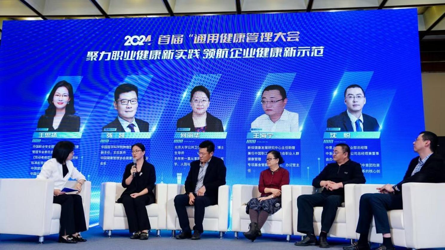 在圆桌论坛环节,来自北京大学公共卫生学院教授何丽华,中国医学科学院肿瘤医院防癌办副主任、主任医师张凯,新探健康发展研究中心主任助理王海宁,中国石油中意人寿团险及健康险事业部总经理沈悦,中国职业安全健康协会劳动者健康管理专业委员会秘书长王思扬聚焦如何在企业中推动职业健康创新实践以及健康管理的未来方向进行深入探讨。