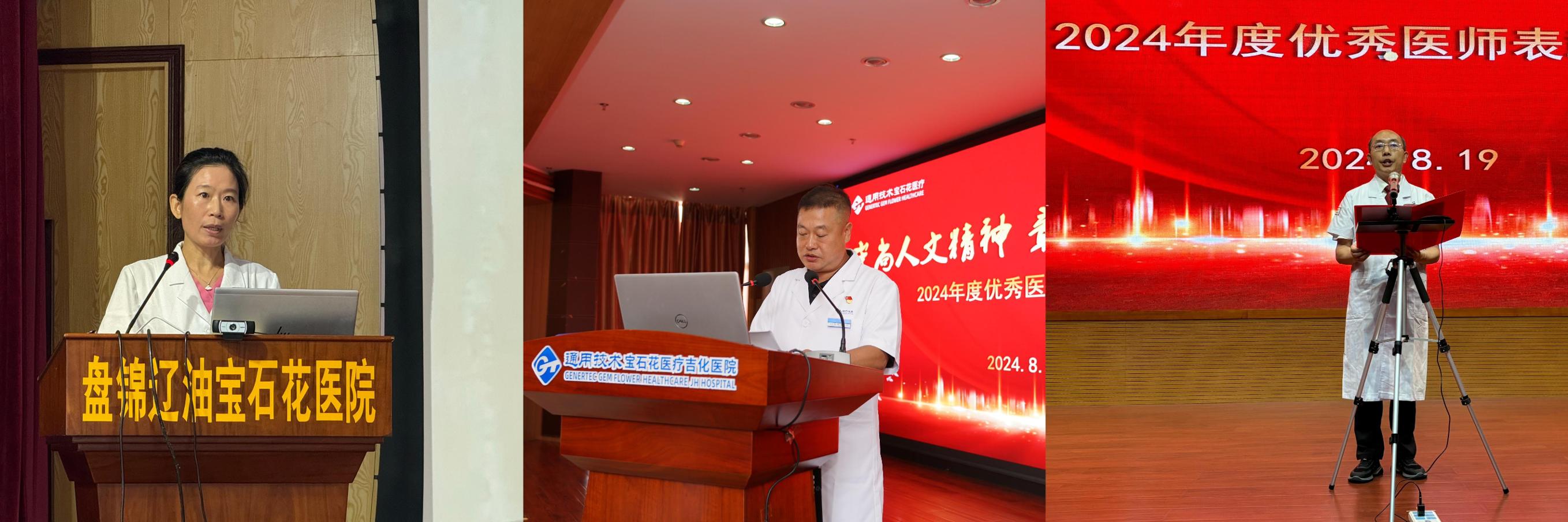 会上,盘锦辽油宝石花医院放射线科李维医生,吉林市化工医院药剂科韩波主任,四川宝石花医院医院副院长、大外科主任、泌尿外科主任董永超等3位“优秀医师”代表分别进行了发言。