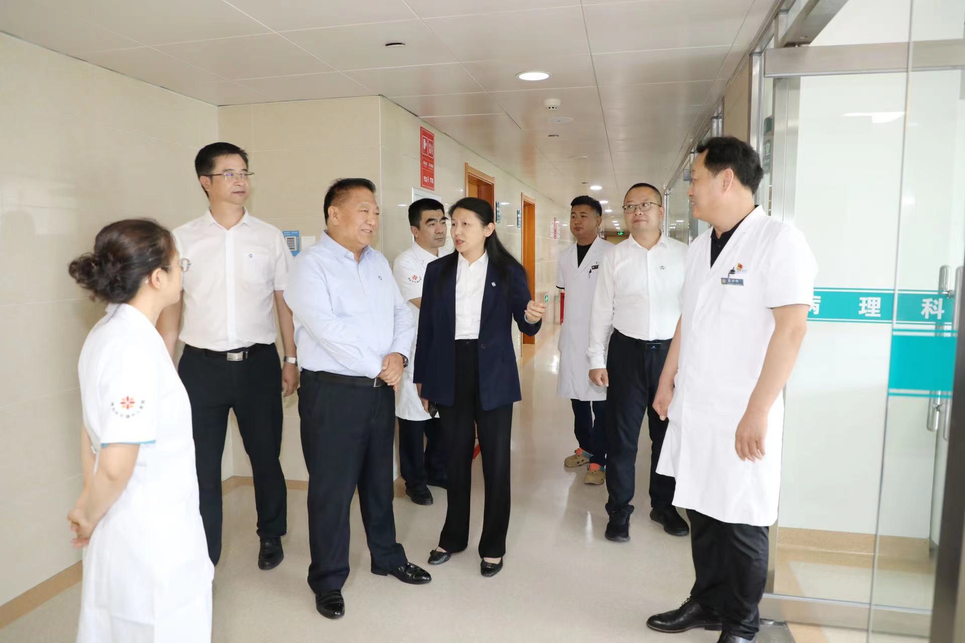 李亚东一行实地走访了医院体检科、骨科、重症医学科、病理科、门诊大厅、门诊手术室、呼吸与危重症医学科等科室机构,了解科室建设情况,并与医院领导班子成员开展座谈交流,听取了医院全面工作汇报。