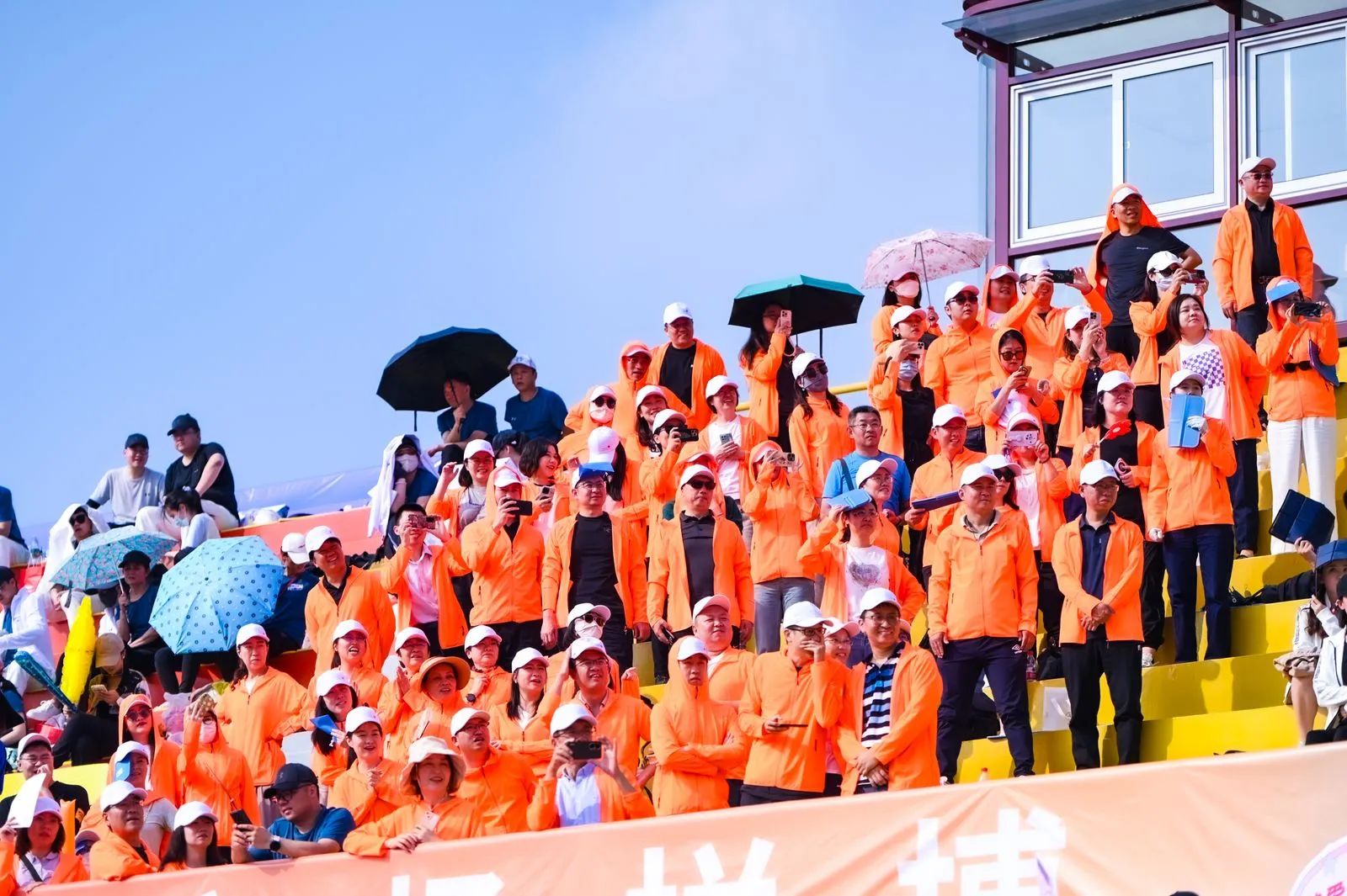 宝石花医疗领导班子成员在赛场上和啦啦队员们一起为运动员加油鼓劲,沉浸在紧张、激烈、欢快的氛围中。