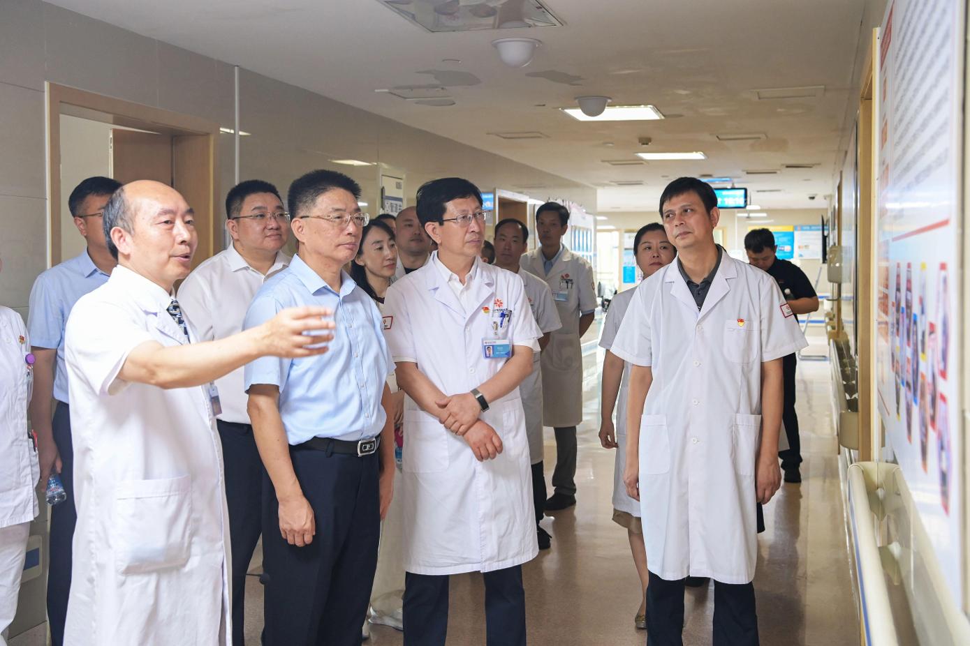 王会杰一行走访了解了医院门诊大厅、放射科、泌尿外科、健康管理中心等科室,询问了科室在学科建设、人才队伍培养、运营管理等方面的情况,与干部职工进行了座谈交流。
