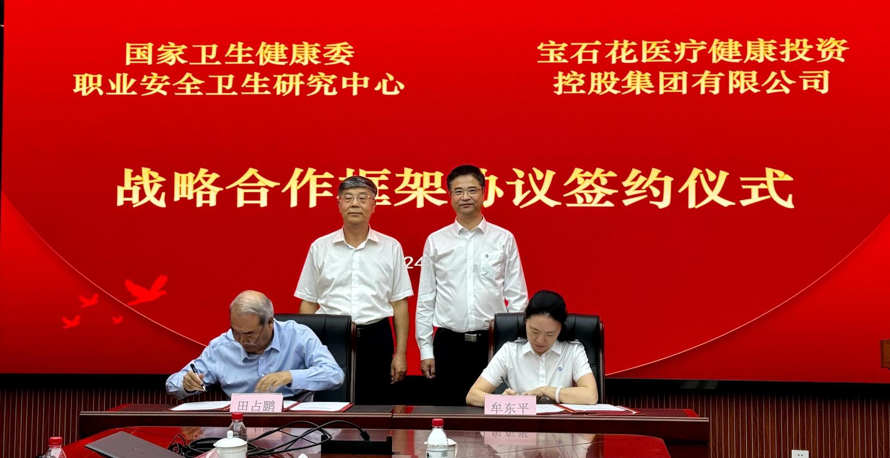为进一步推进通用技术宝石花医疗职业卫生服务的体系建设和融合发展,2024年9月6日下午,宝石花医疗总经理、党委副书记张辉,总会计师、党委委员牟东平一行赴国家卫生健康委职业安全卫生研究中心进行座谈交流,并签署战略合作框架协议。宝石花医疗总会计师、党委委员牟东平与国家卫生健康委职业安全卫生研究中心副主任田占鹏代表双方进行签约。